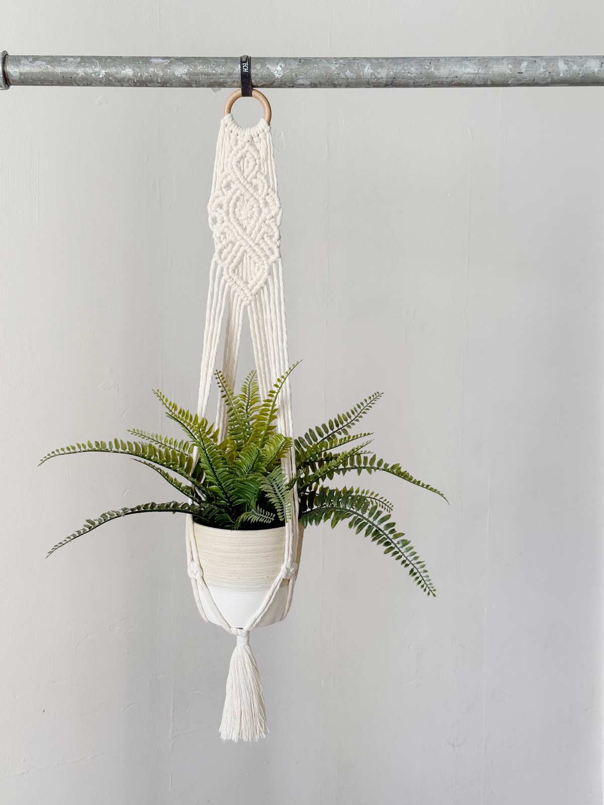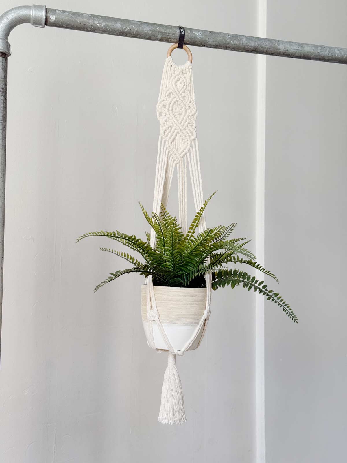 Unsere Makramee-Blumenampel ist der ultimative Blickfang für dein Zuhause. Mit handgeknotetem Charme aus hochwertigem Baumwollgarn gefertigt, verleiht sie deinen Pflanzen einen Hauch von Boho-Stil. Das kunstvolle Design ist nicht nur eine stilvolle Aufhängung, sondern auch ein echtes Deko-Highlight, das jedem Raum eine moderne Note verleiht. Schmücke deine Wohnung mit dieser einzigartigen Blumenampel und bringe die Natur stilvoll ins Interior.