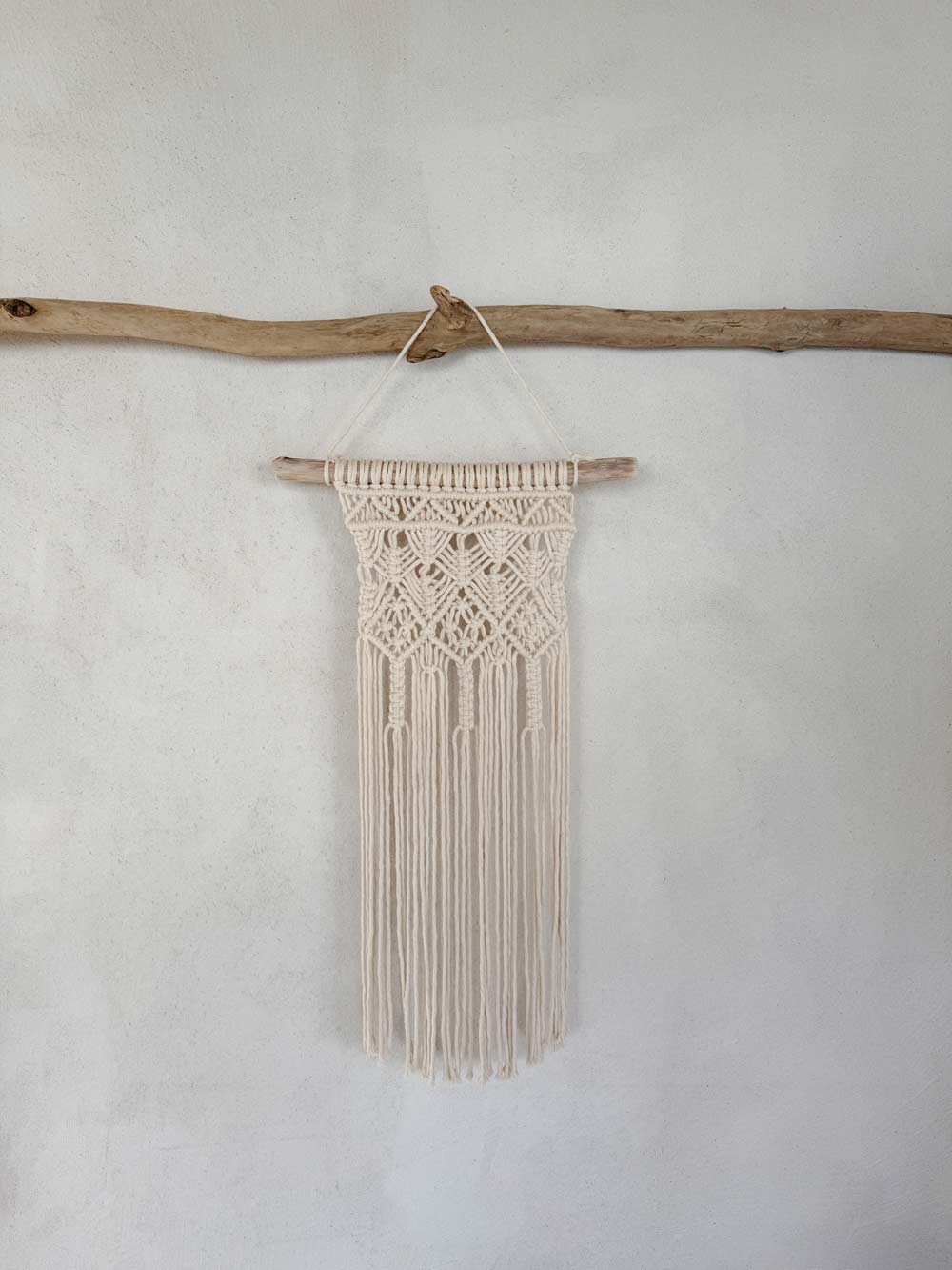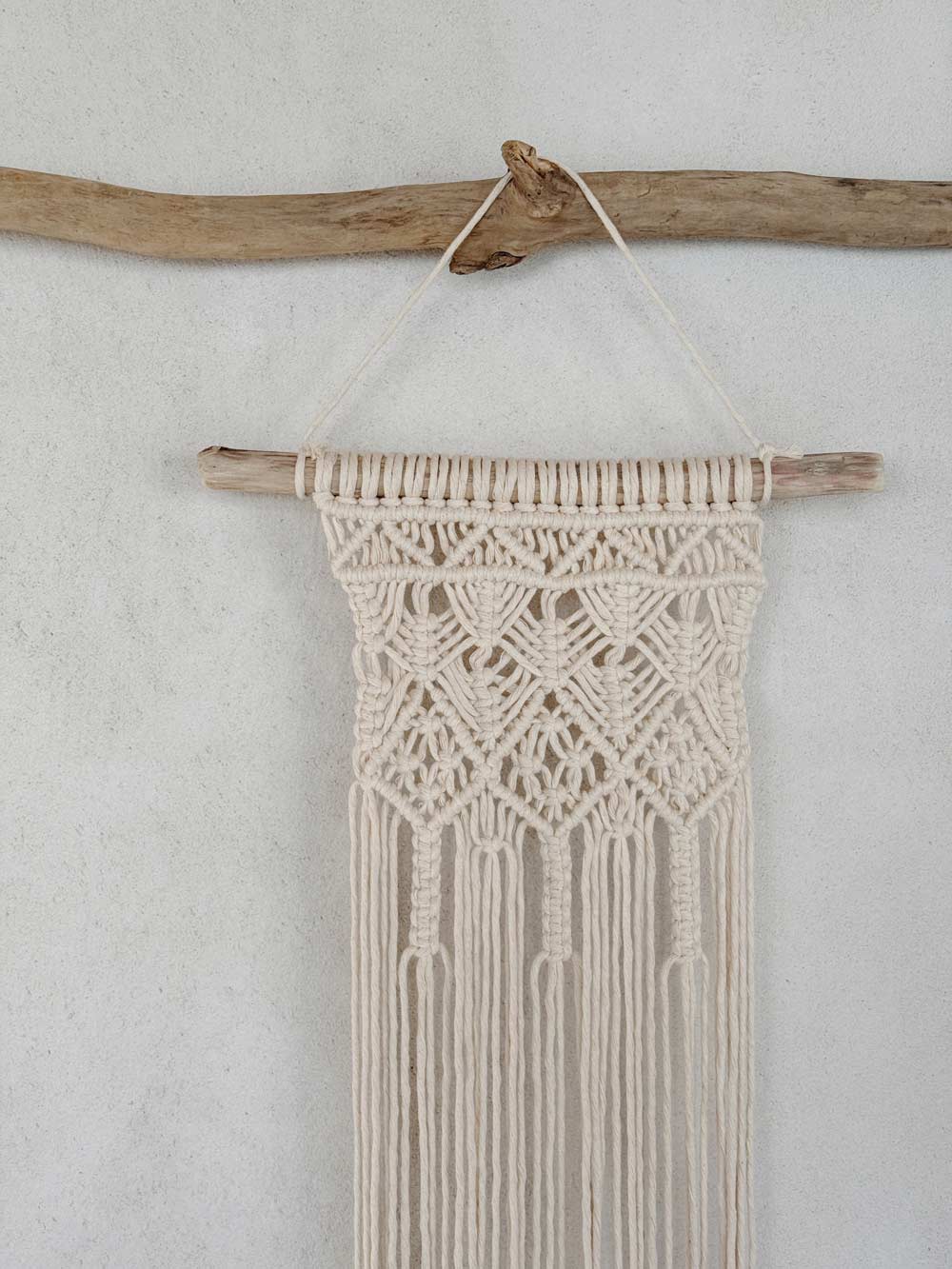 Unser moderner Makramee-Wandbehang THEA ist nicht nur ein schicker Dekorationsartikel, sondern auch eine persönliche Aussage für dein Zuhause. Handgefertigt mit einem zeitgemäßen Design, vereint er modernen Chic mit individuellen Details. Jeder Knoten erzählt eine Geschichte, und dieser Wandbehang wird zu einem einzigartigen Ausdruck von Stil und Persönlichkeit in deinem Raum.