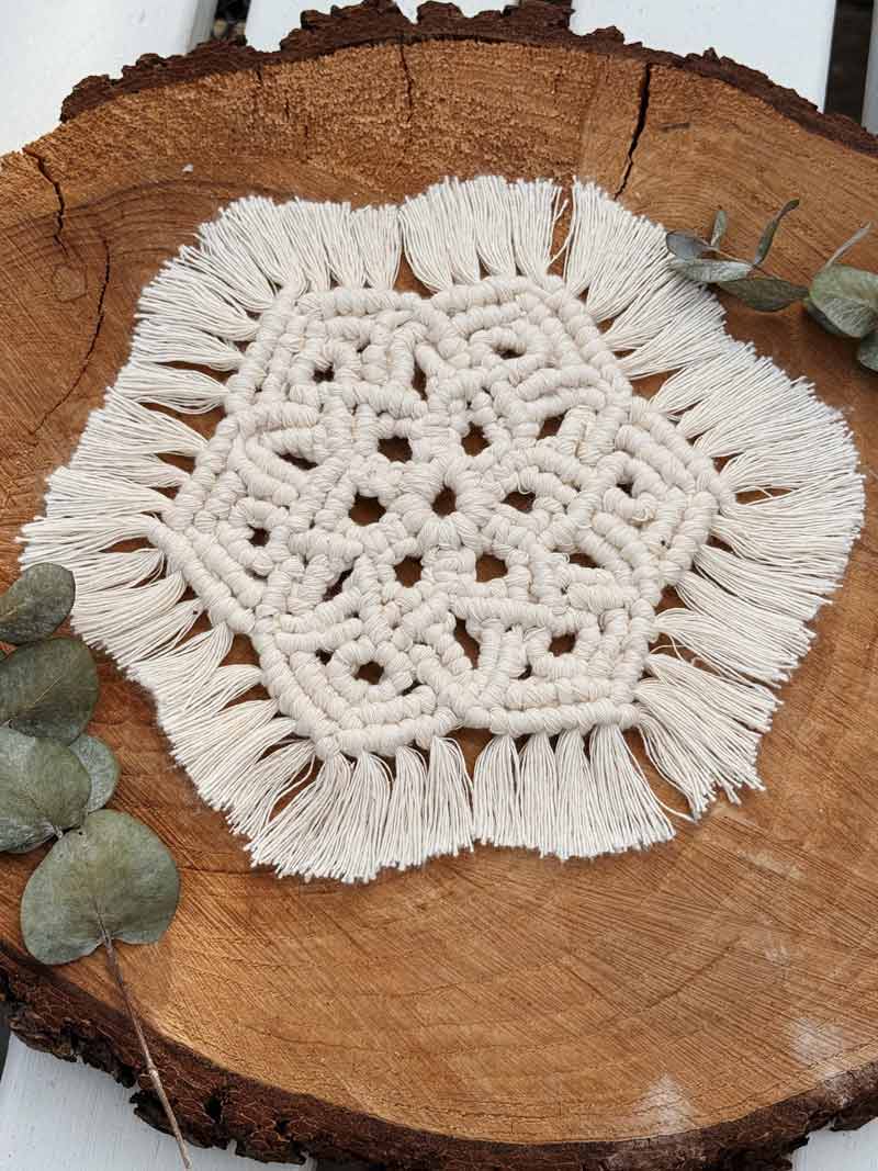 Veredle deine Tischdekoration mit diesem individuell handgefertigten Makramee-Untersetzer aus Makramee-Garn. Jeder Untersetzer erzählt seine eigene Geschichte und bringt eine einzigartige Note auf deinen Tisch. Gefertigt mit Liebe zum Detail und einer Prise handwerklicher Kunst, schützen diese Untersetzer nicht nur deine Oberflächen, sondern bringen auch Wärme und Authentizität in dein Zuhause.