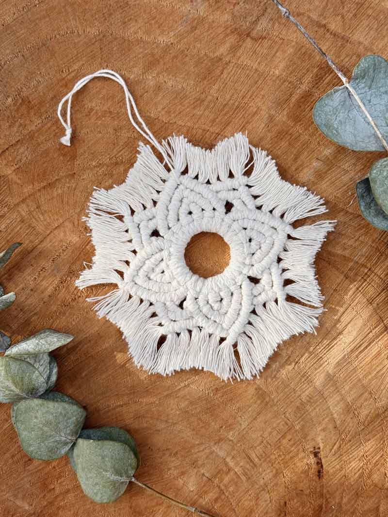 Setze glanzvolle Akzente in deiner Weihnachtsdekoration mit meinen handgefertigten Makramee-Weihnachtsanhängern in Sternform. Jeder Anhänger ist ein kleines Kunstwerk, kunstvoll geknüpft und mit Liebe zum Detail gestaltet. Ob am Christbaum, Geschenken oder Fenster - diese individuellen Anhänger verleihen deinem Fest eine persönliche Note und sind auch als liebevolles Geschenk perfekt geeignet.