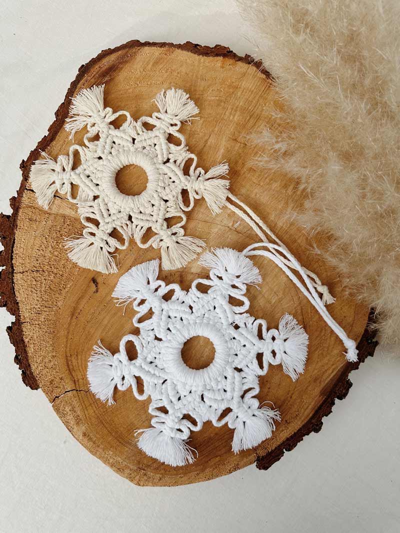 Setze glanzvolle Akzente in deiner Weihnachtsdekoration mit unseren handgefertigten Makramee-Weihnachtsanhängern. Jeder Anhänger ist ein kleines Kunstwerk, kunstvoll geknüpft und mit Liebe zum Detail gestaltet. Ob am Christbaum, Geschenken oder Fenster - diese individuellen Anhänger verleihen deinem Fest eine persönliche Note und sind auch als liebevolles Geschenk perfekt geeignet.
