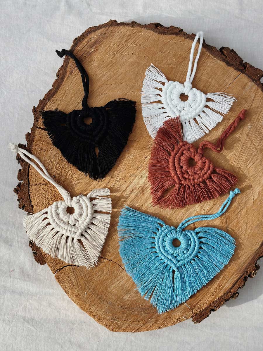 Setze glanzvolle Akzente in deiner Weihnachtsdekoration mit unseren handgefertigten Makramee-Weihnachtsanhängern. Jeder Anhänger ist ein kleines Kunstwerk, kunstvoll geknüpft und mit Liebe zum Detail gestaltet. Ob am Christbaum, Geschenken oder Fenster - diese individuellen Anhänger verleihen deinem Fest eine persönliche Note und sind auch als liebevolles Geschenk perfekt geeignet.