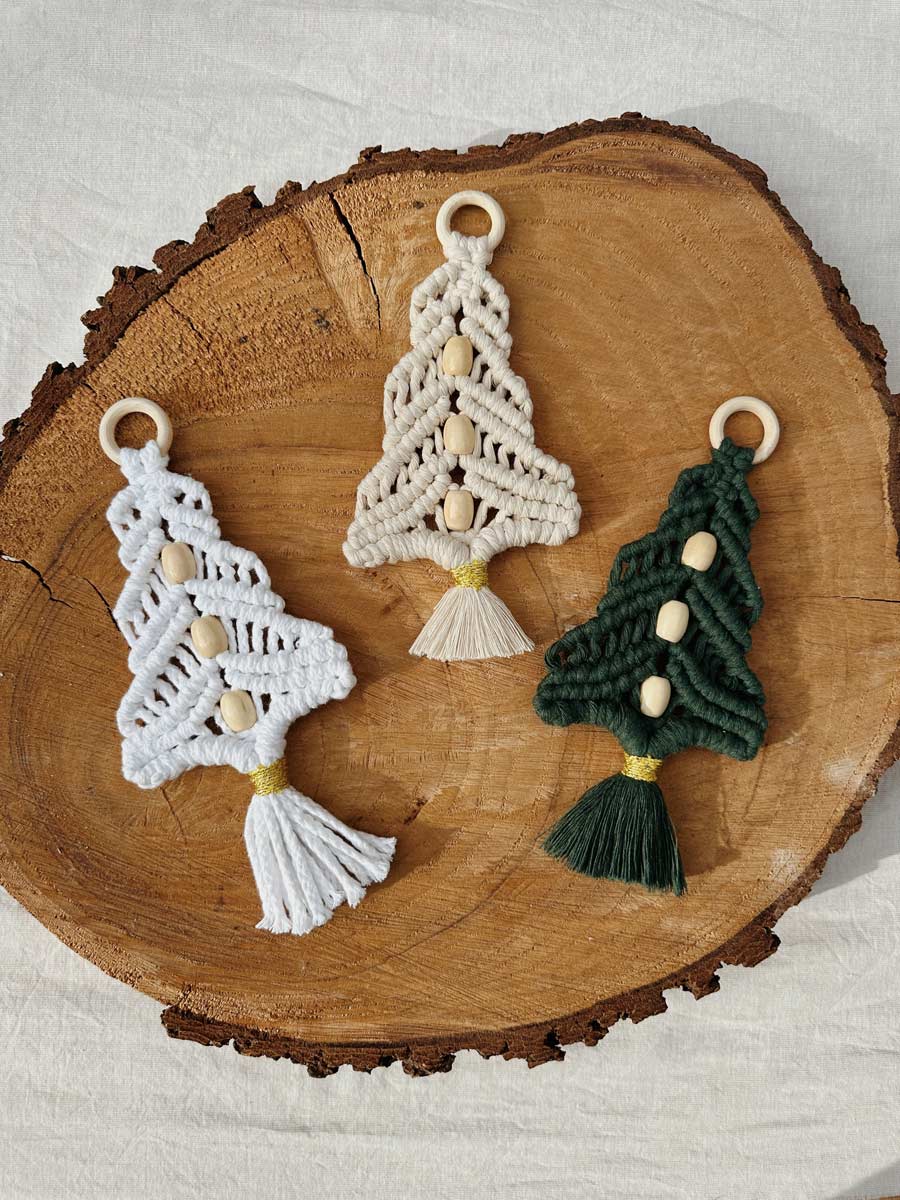 Erwecke deine festliche Stimmung mit unserem persönlich handgefertigten Makramee-Weihnachtsbaum mit Perlen. Jeder Knoten und jede Perle erzählt eine Geschichte von Sorgfalt und Liebe zum Detail, wodurch dieser Baum zu einem einzigartigen, persönlichen Schmuckstück wird. Perfekt zum Aufhängen, bietet er nicht nur festlichen Glanz, sondern auch die Möglichkeit, diese handgearbeitete Schönheit entweder für sich selbst zu behalten oder als herzliches Geschenk weiterzugeben.