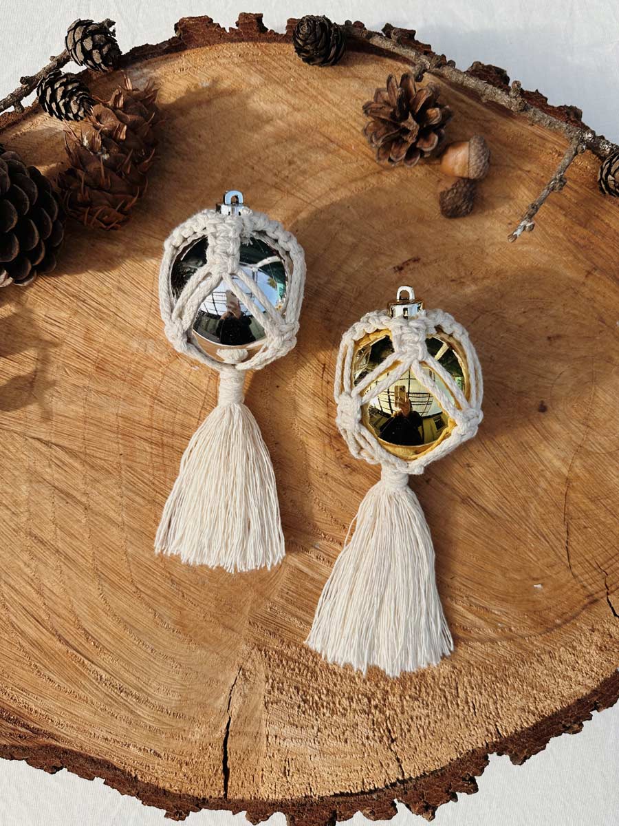 Verleihe deinem Weihnachtsbaum eine persönliche Note mit unseren einzigartigen Makramee-Weihnachtsbaumkugeln. Jede Kugel ist von Hand gefertigt und erzählt ihre eigene Geschichte. Durch die kunstvollen Knotenmuster schaffst du nicht nur festliche Stimmung, sondern auch einen persönlichen Ausdruck von Liebe zum Detail in deiner Weihnachtsdekoration.