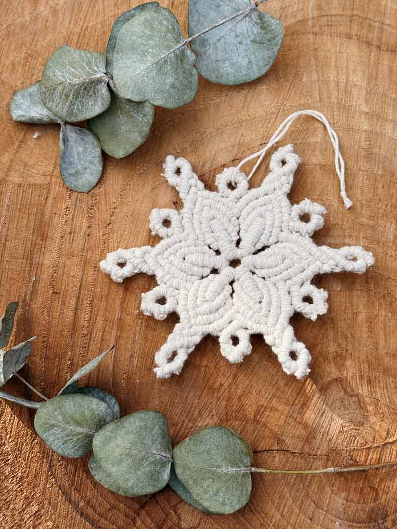 Setze glanzvolle Akzente in deiner Weihnachtsdekoration mit meinen handgefertigten Makramee-Weihnachtsanhängern in Sternform. Jeder Anhänger ist ein kleines Kunstwerk, kunstvoll geknüpft und mit Liebe zum Detail gestaltet. Ob am Christbaum, Geschenken oder Fenster - diese individuellen Anhänger verleihen deinem Fest eine persönliche Note und sind auch als liebevolles Geschenk perfekt geeignet.